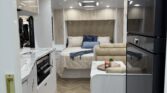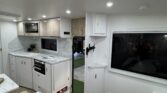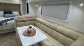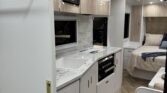 Step inside the Dynasty Oasis and you’ll immediately appreciate the balance of space, comfort, and clever design. The front features a generous island queen bed – your sanctuary after a long day on the road – while a roadside cafe-style dinette offers a cosy place to relax, eat or plan your next destination. At the rear, the Oasis delivers a large, fully appointed ensuite – with shower, toilet and ample space – making it perfect for extended road trips or full-time touring. With thoughtful touches like USB reading lights, reverse-cycle air conditioning, and a Smart TV + entertainment system, you’ve got all the comforts of home even when you’re far from it.